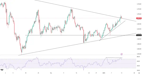 强劲非农数据并未打断黄金上行的节奏,但也无法给金价提供更多的利好刺激?;平鹪谂讨刑粽?/span>2700美元未果后收于趋势线附近,在继续上行之前或许需要更多时间酝酿蓄力。