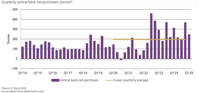 全球央行的黄金净买入量 2014-2025? ?来源:世界黄金协会