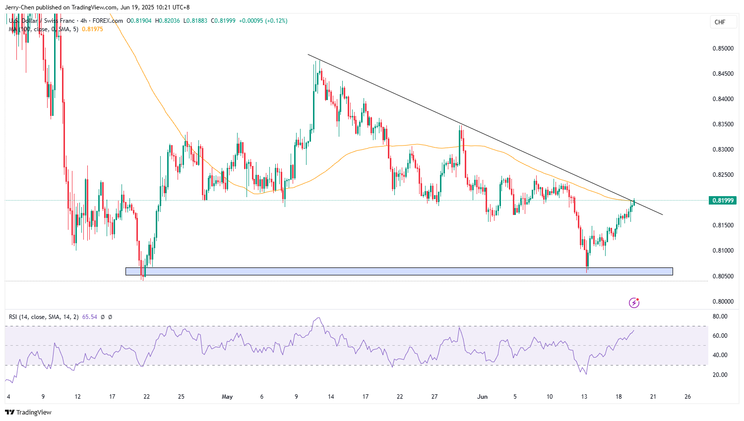 美/瑞在瑞士央行会议之前连续四天上涨,一方面是提前计价了瑞士央行降息至0%的预期,同时也是因为美联储最新的鹰派声明,两家央行鲜明的政策差异给汇价提供了支撑。